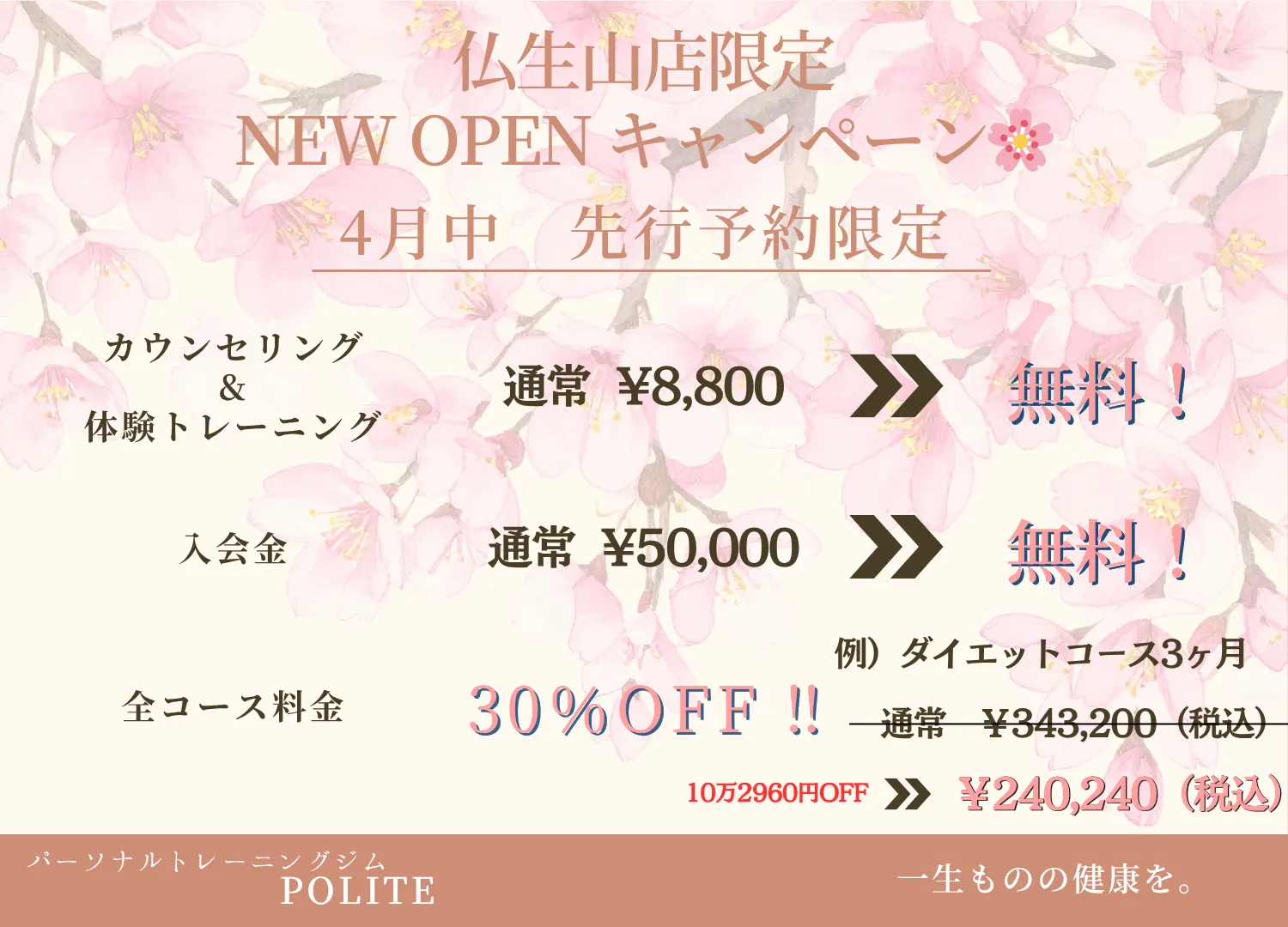 少しの疑問点や不安点を解消したかったなぁと思いながらジムを後にするのは、ご不満ではないですか?POLITEではトレーニング間を詰め過ぎず、お客様との対話を重視し、毎回のトレーニングを満足して退店していただくことをモットーにしております。また、毎月のご入会を各店舗5名様までと限定させていただいております。予約環境や、パーソナルトレーニングの質とお客様の満足度を保つための限定となりますので、ご入会をお待ちいただく可能性もございますが、ご了承ください。