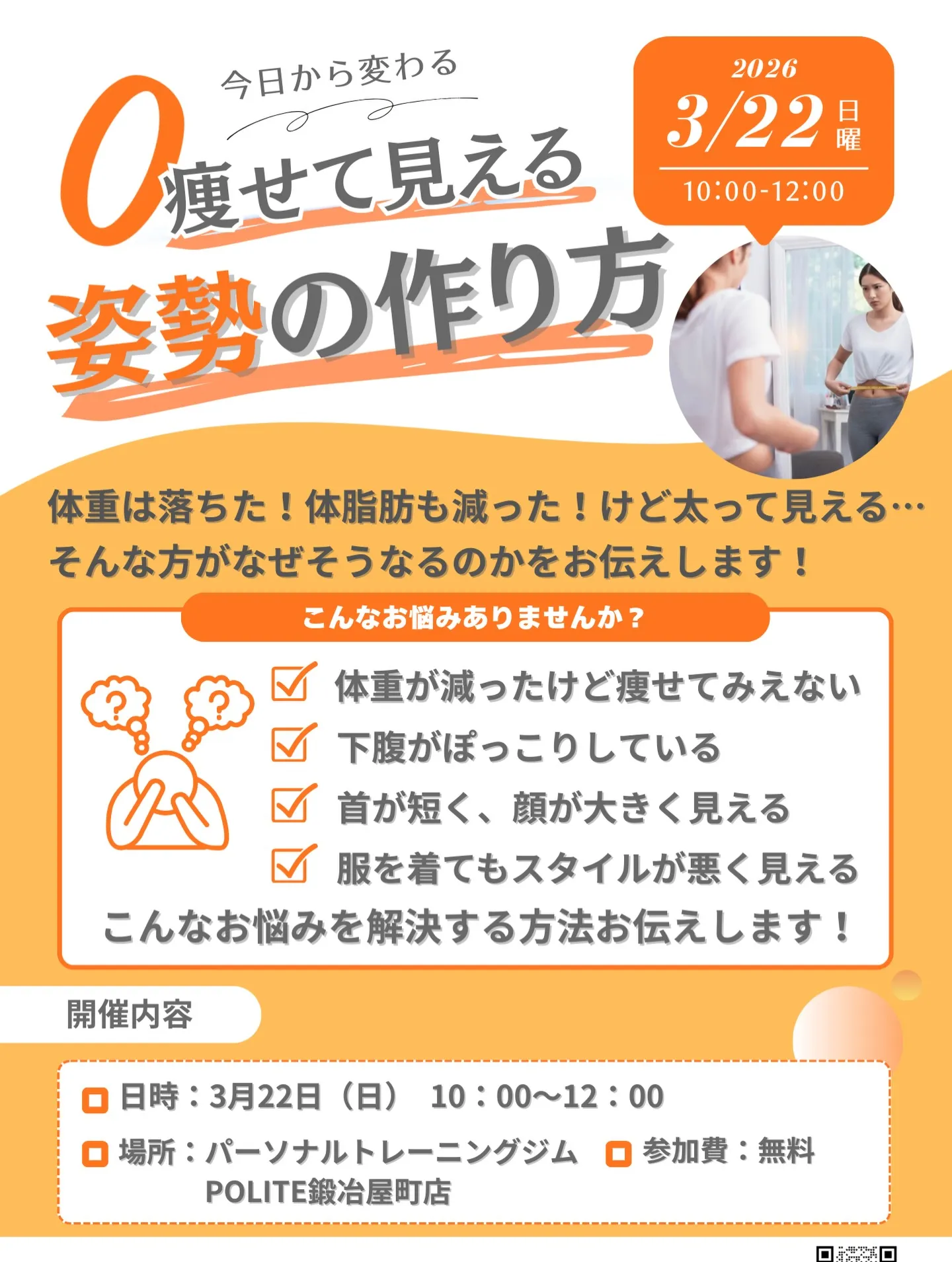 【痩せて見える姿勢の作り方セミナー開催! 3/22(日)】