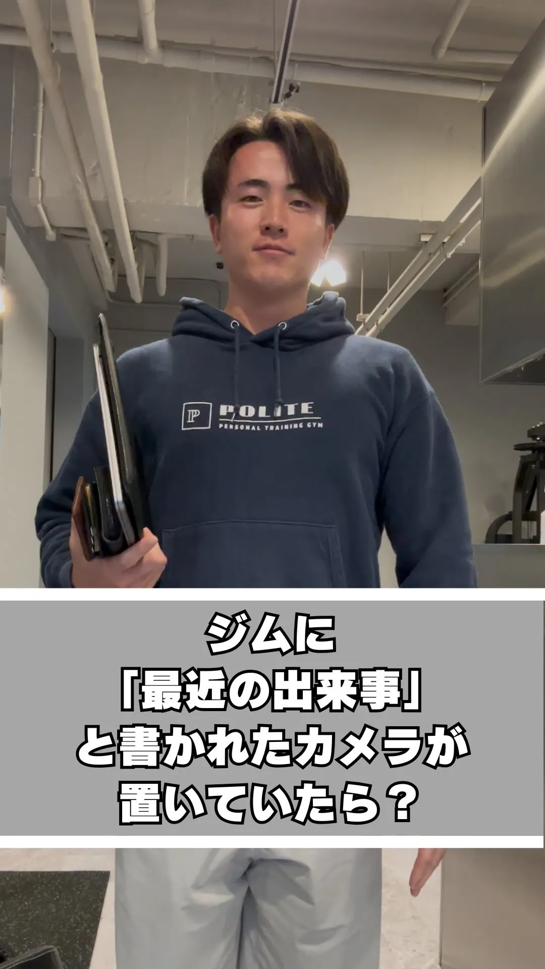 【ジムに「最近の出来事は?」と書かれたカメラが置いていたら?... 【ジムに「最近の出来事は?」と書かれたカメラが置いていたら?】こんにちは!パーソナルトレーニングジムPOLITEの芦田です!今回は、ジムにこっそり無人カメラを仕掛けて「最近の出来事」について話し…